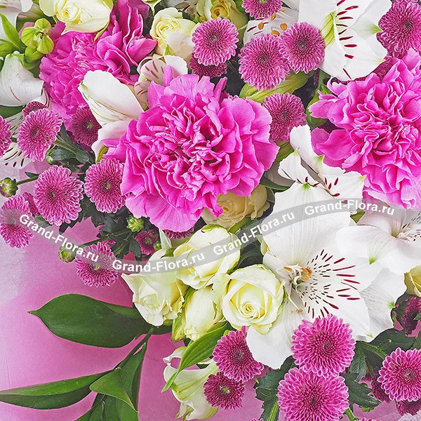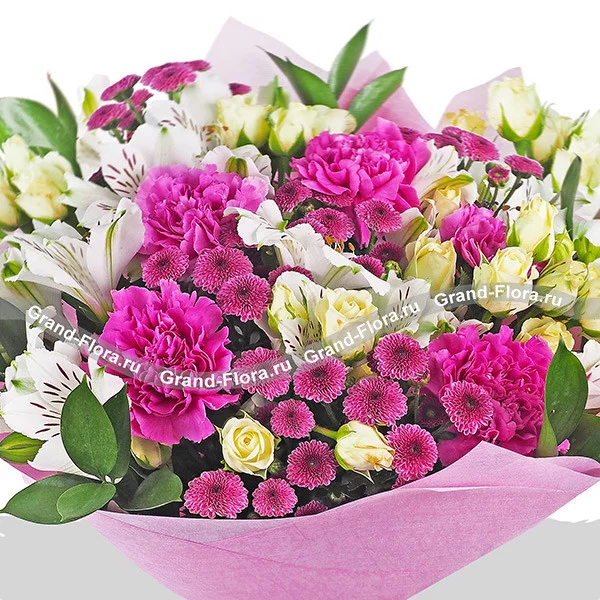 Вальс цветов - букет из кустовой розы, альстромерии и гвоздики